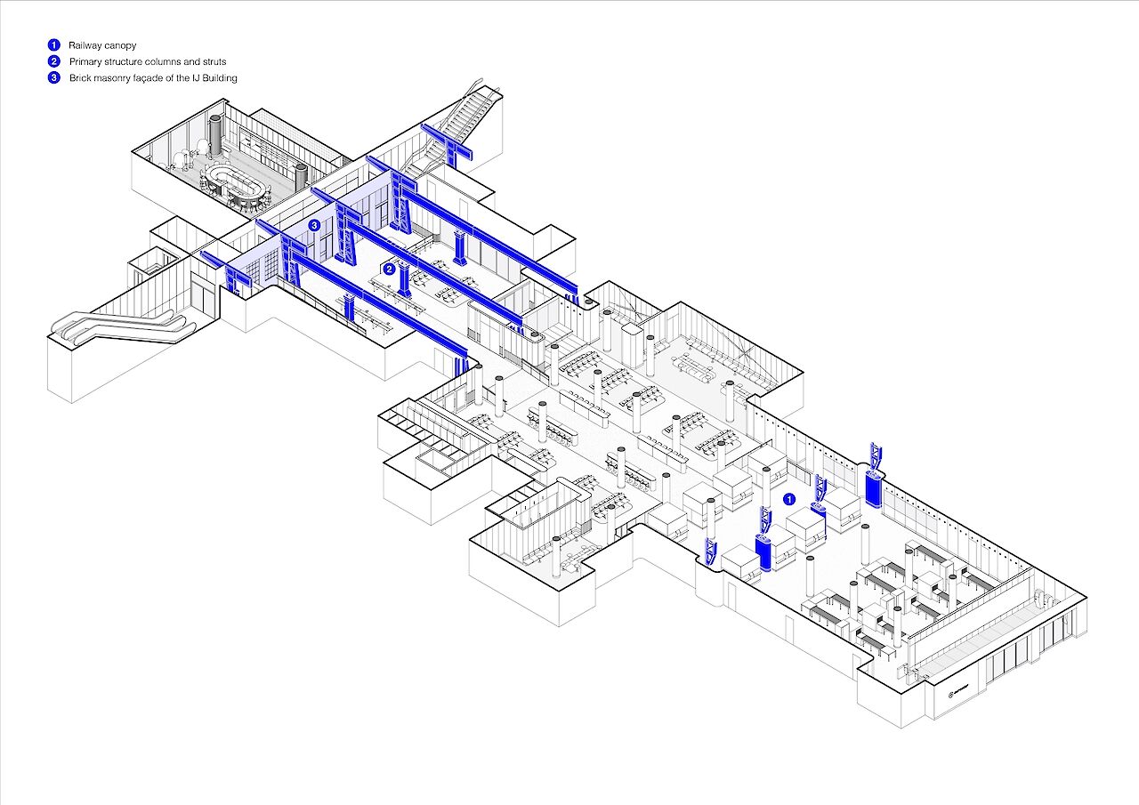 Mallika Arora (architect ZJA Architects & Engineers): “We have taken great care to develop an architectonic concept that restores the lost monumental layers to their full glory, and makes them an integral part of the spatial experience. Anyone entering the new terminal will be able to traverse the entire timeline of Pierre Cuypers’ monument. From the Cuypersgebouw which was built in 1889 to the IJhal which was realized as recently as 2017.”