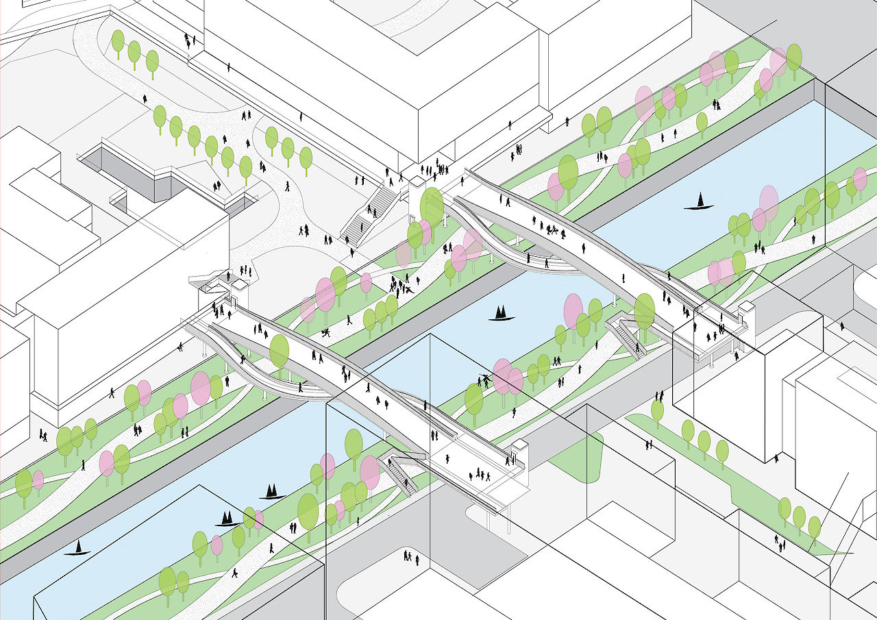 Superimpose won the invited competition to design 4 groups of in total 7 bridges at a new urban development in Hangzhou by using a holistic design approach with one powerful concept to cover the entire masterplan area.